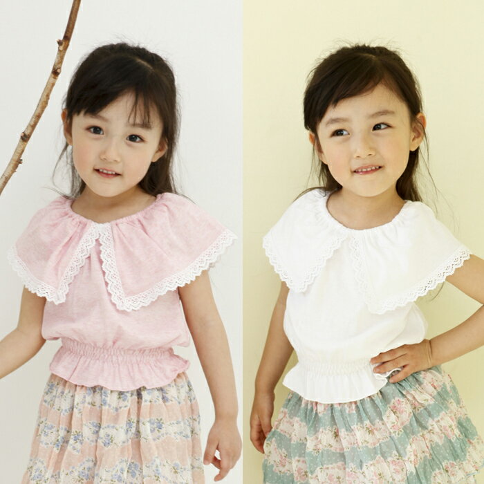 ☆韓国子供服 ナチュラル フリルシャツ☆【5000円以上のお買い物で送料無料】【女の子】【女】襟 半袖 Tシャツ シャツ レース フリル 韓国 子供服 【白/ホワイト/ピンク】 サイズ→[110cm 120cm 130cm 140cm 150cm]
