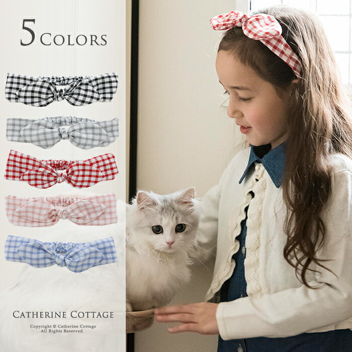 ギンガムチェックリボンのヘアバンド 送料無料 [ キッズ ヘアターバン リボンターバン 子供 女の子 赤 黒 ピンク 水色 ブルー グレー ブラック レッド ヘアアクセサリー アクセサリー カジュアル 春 夏 秋 冬 楽天 通販 ]キャサリンコテージ YUPS4