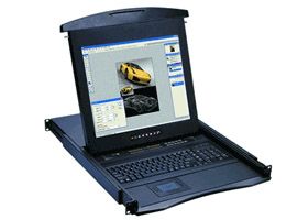 N119-M1603B 「直送」【代引不可・他メーカー同梱不可】 オースティンヒューズ 1U 19インチLCDモニター 106キーキーボード ドロアー トラックボールマウス PS/2&USBコンボ 16ポート Matrix-KVMスイッチ 3コンソール