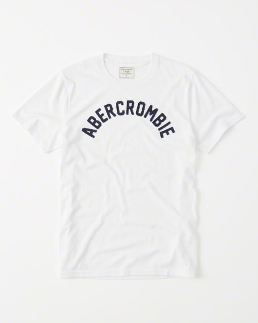 ◆【期間限定値下げ中】【送料無料】【新品】アバクロ【Mensメンズ】ロゴアップリケTシャツ(半袖)/White【Applique Graphic Tee】【Graphic Tees】【Abercrombie&Fitch】【本物保証】