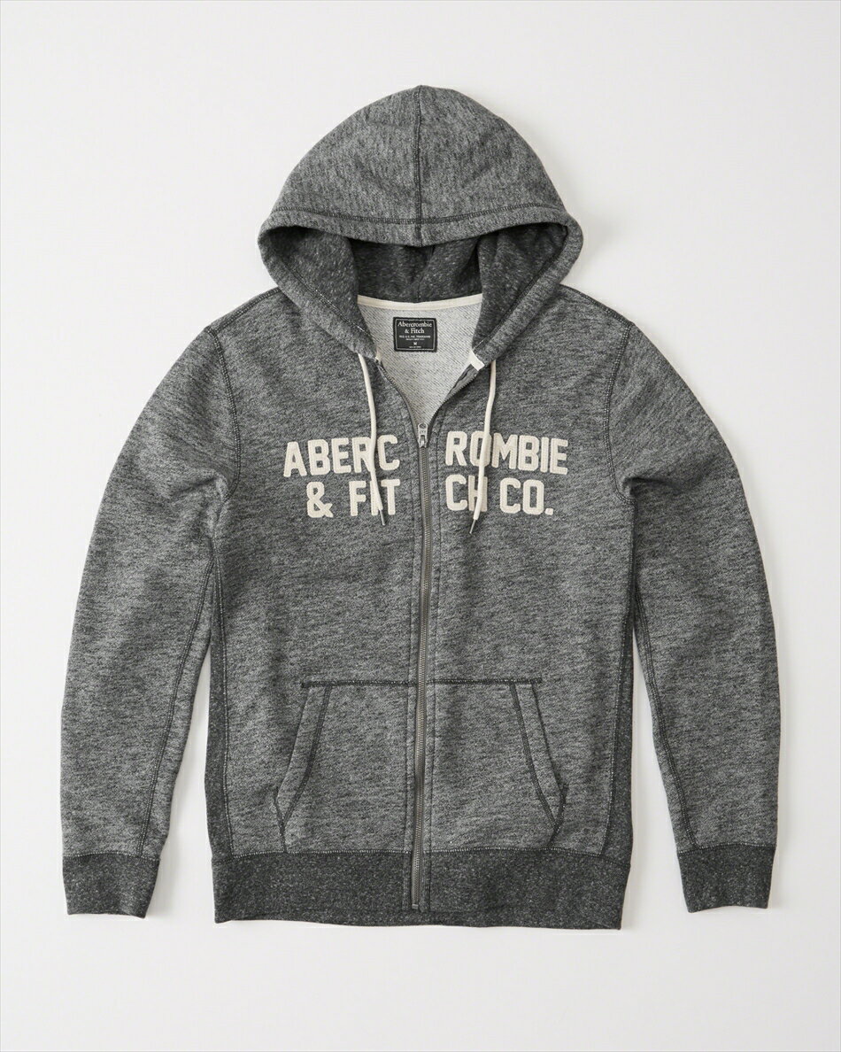 【送料無料】【新品】アバクロ【Mensメンズ】アップリケフルジップパーカー/Heather Grey【Logo Graphic Hoodie】【Abercrombie&Fitch】【本物保証】