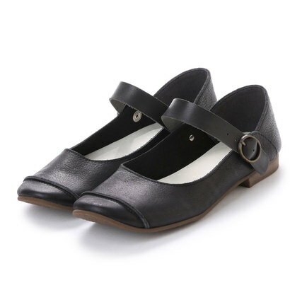 ヒップス HIPS レザーサイドゴアフラットシューズ (ブラック)