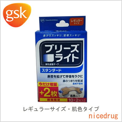 今だけ!2枚増量!!【グラクソ・スミスクライン】 ブリーズライト 肌色タイプレギュラー 10枚+2枚入鼻孔拡張テープ 縦約17mm×幅約55mm鼻のつまり・いびきを軽減