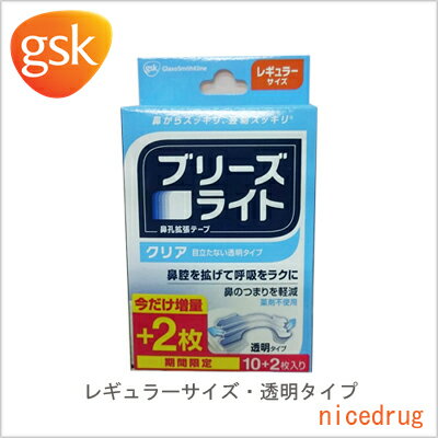 今だけ!2枚増量!!【グラクソ・スミスクライン】 ブリーズライト クリア目立たない透明タイプレギュラー 10枚+2枚入鼻孔拡張テープ 縦約17mm×幅約55mm鼻のつまり・いびきを軽減