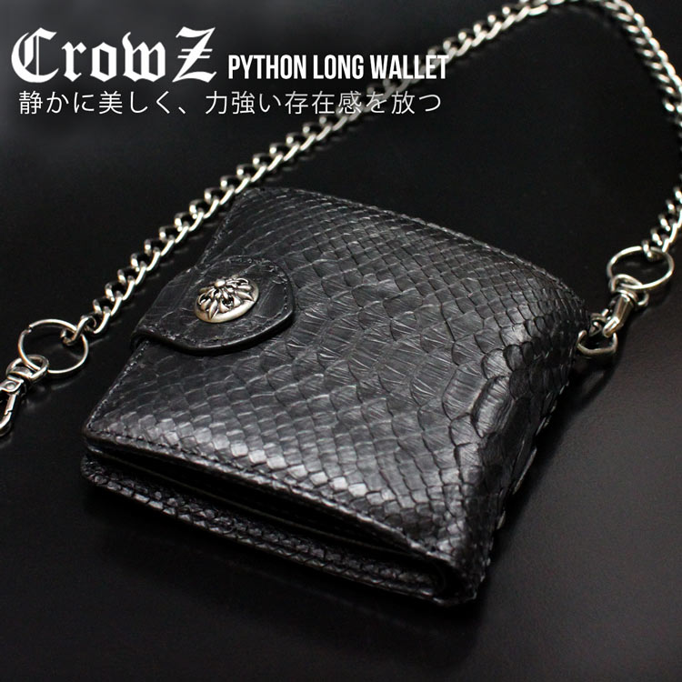 Crows/クローズ パイソン 2つ折り財布 ウォレットチェーン コンチョ付き メンズ ブラック カード13枚収納